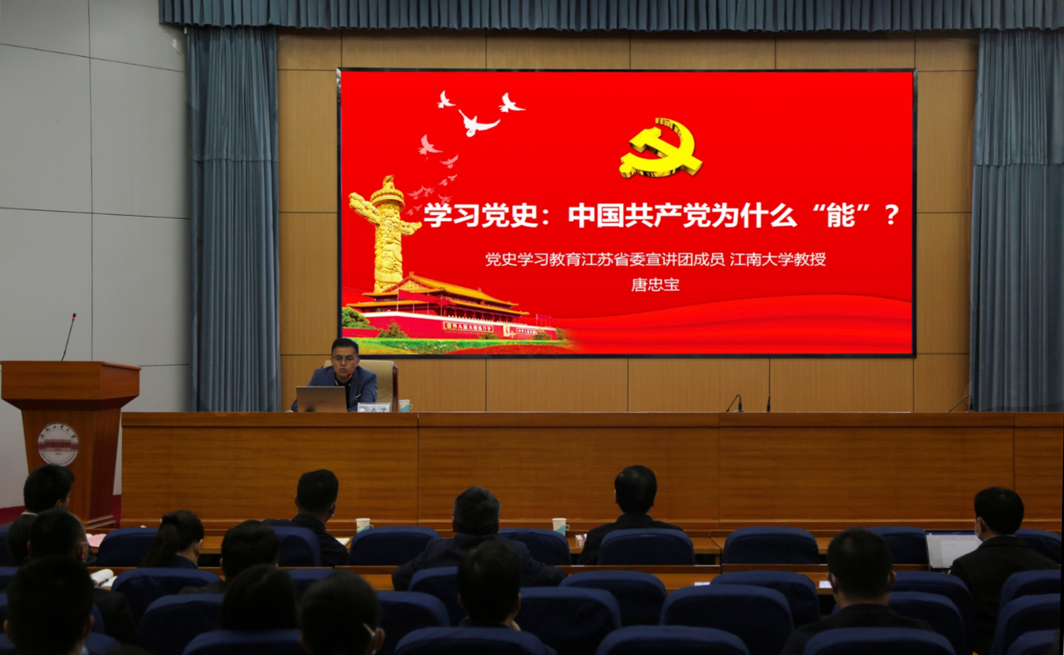 为深入开展党史学习教育,进一步引导师生树立正确的党史观,4月20日上午,党史学习教育专题报告暨斛兵学工讲堂第一讲在屯溪路校区学术会议中心大报告厅举行。党史学习教育江苏省委宣讲团成员、中央电视台《百家讲坛》主讲嘉宾、教育部首批思政工作精品项目“宝哥说”思政文化育人品牌主讲人江南大学马克思主义学院教授唐忠宝受邀作专题报告,报告会由党委学生工作部(处)部长钟小要主持。