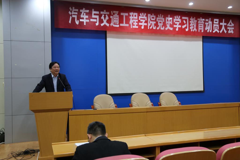 3月26日下午,汽车与交通工程学院召开党史学习教育动员会,学院党委书记张代胜作动员讲话,院长龙建成主持会议。