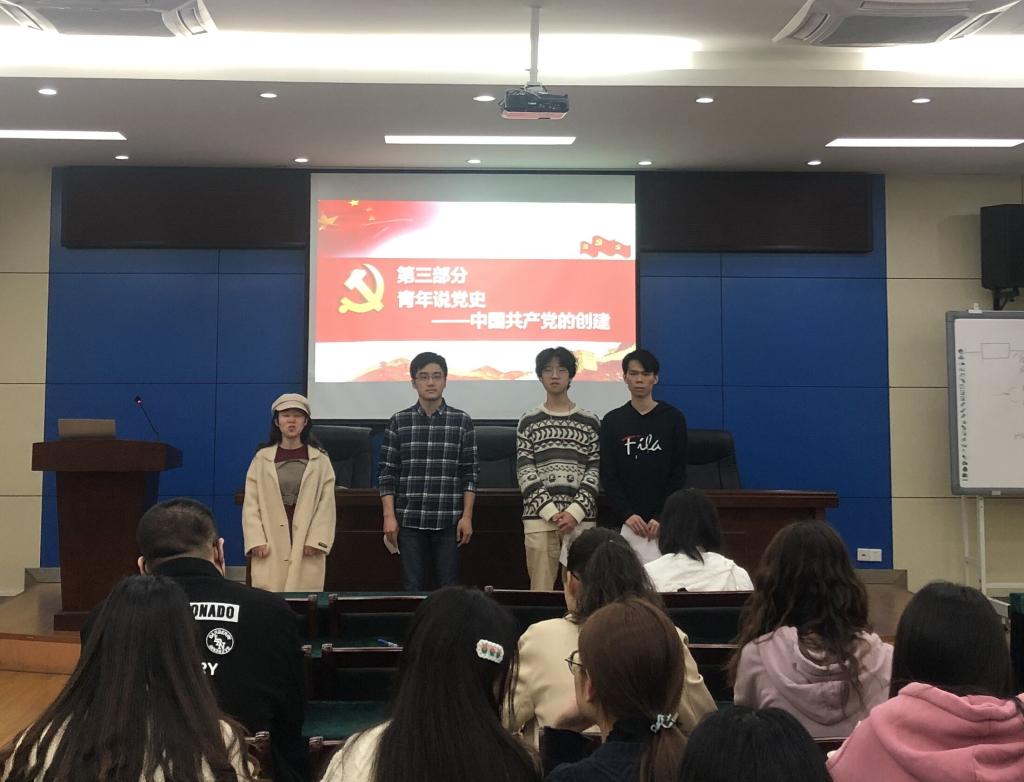 接着,黄晓阳、梁毅禧、姬智敏、韩仕其四位同学以《中国共产党的创建》为主题,分别以“近代中国民族复兴的历史任务和艰难探索”“五四运动和马克思主义在中国的传播”“共产党早期组织的建立和党的第一次全国代表大会”“制定民主革命纲领和开展工农运动”为主题,讲述了中国共产党创建的历史背景和波澜壮阔的历史过程。四位宣讲人一致表示,在查找资料和阅读史实的过程中,心灵受到震撼,思想受到洗礼,更加坚定了今后为党分忧、为国干事、为民谋利的初心使命。现场气氛热烈,在座的同学们学习热情高涨。