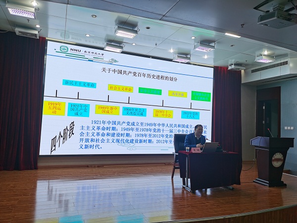 4月9日下午,马克思主义学院在翡翠湖校区建艺馆举办学院党史学习教育报告会。此次报告邀请了南京师范大学马克思主义学院院长王刚教授主讲,学院院长牛小侠主持会议,学院教职工和全体硕博研究生聆听了报告。