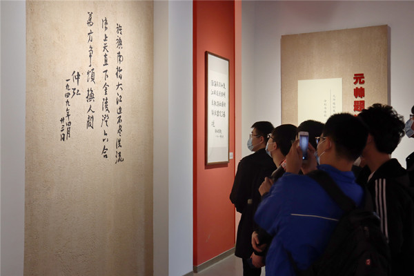 走进瑶岗,师生们便感受到了那个年代的红色印记。首先参观是《渡江颂》书画展厅,展览多为渡江战役中的将领在取得胜利之后写下的豪迈诗篇与所见所感所闻,再现了那个时代的意气风发。在如今的瑶岗村中心位置,有一座灰色小瓦砖墙古色古香的房子,它就是渡江战役总前委旧址。步入“总指”大厅,正面屏风上悬挂着毛主席和朱总司令的画像。东西山墙上,分别镶嵌着《渡江战役敌我态势图》和《渡江战役进军路线图》。中央用3张大方桌排列成的会议桌旁,环摆着8张朱红色靠背椅,上方正中的一张是邓书记的坐位,大厅基本维持了当时的原貌。