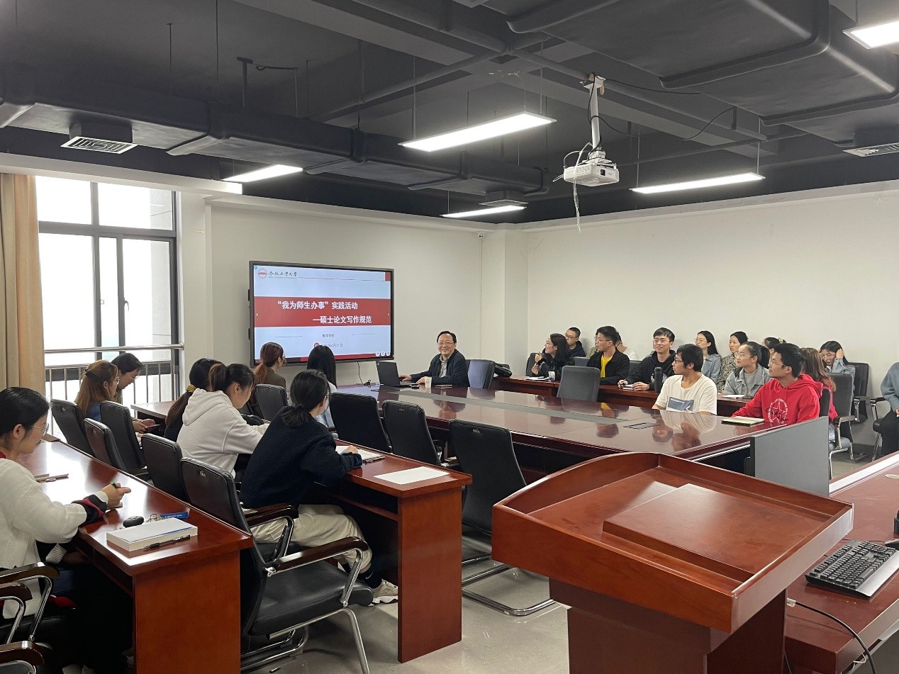 4月21日下午15:00,数学学院在翡翠科教楼B座1710室举办“我为师生办实事”主题实践活动,邀请开元(中国)学报社社长朱晓临教授为学院研究生做KY.COM硕士论文写作规范报告。