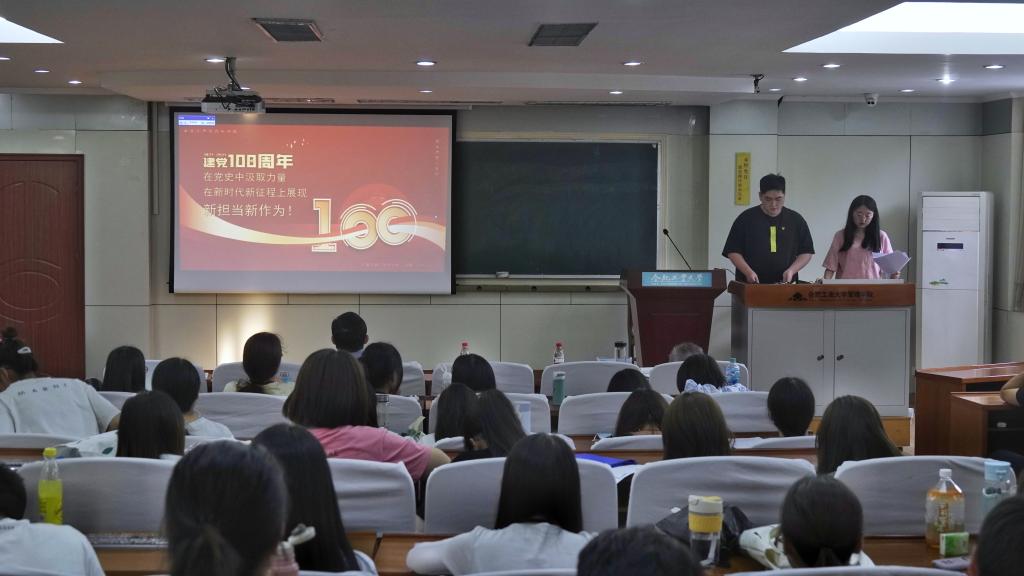 为贯彻落实党史学习教育要求,深入开展学习交流研讨,6月15日下午,管理学院本科生第一党支部在管理一号楼第三报告厅开展了“学习光辉党史,传承红色精神”专题研讨会,校关工委老师、管理学院相关负责人、支部指导老师参加研讨会。