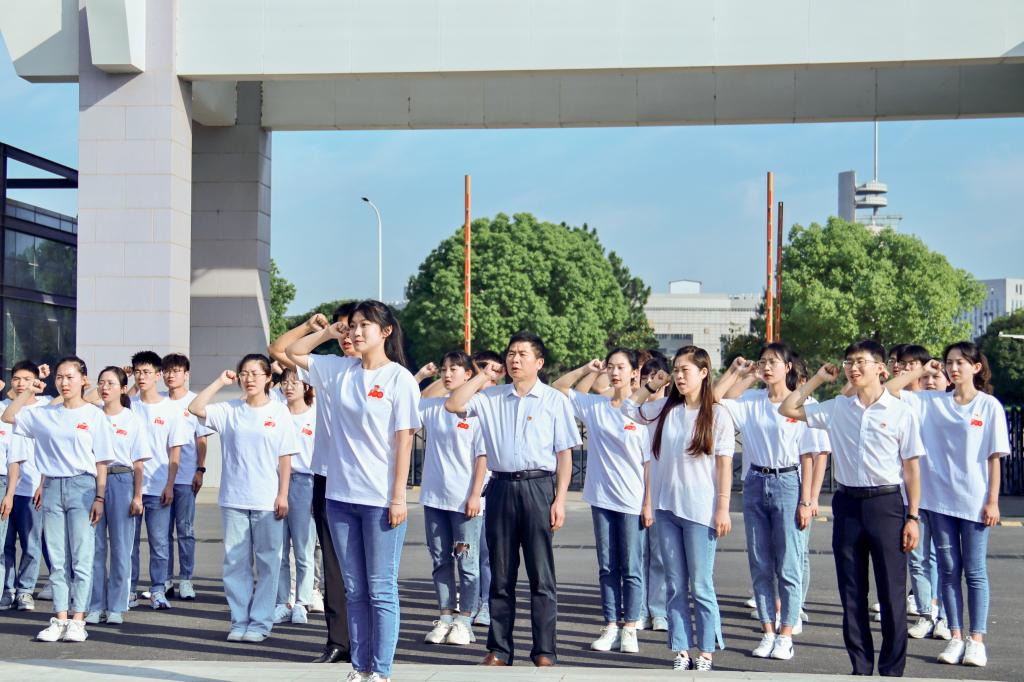 6月23日上午,经济学院“庆祝中国共产党成立100周年”主题党日活动暨党员入党宣誓仪式在翡翠湖校区南门广场举行,学院党委书记张炳武、党委副书记兼纪委书记谢晶晶、本科生辅导员、学生老党员代表以及新发展学生党员50余人参加主题活动。