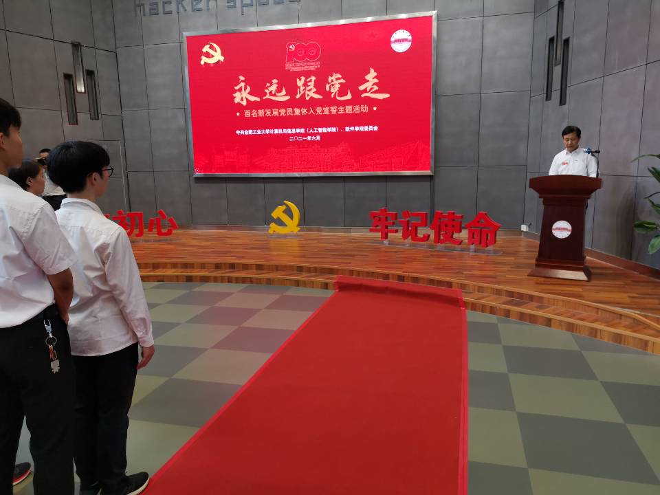6月30日下午,计算机与信息学院(人工智能学院)、软件学院党委组织开展了“永远跟党走”百名新发展党员集体入党宣誓仪式。学院相关辅导员老师、2021年新发展党员参加仪式。