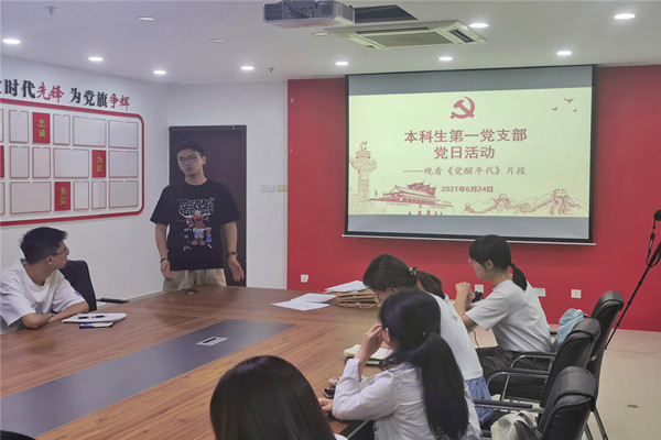 “悟初心”:观《觉醒年代》片段。6月24日晚,该支部在食品楼205开展“体悟初心使命,升华理想信念”主题党日活动。活动中,同学们集中观看《觉醒年代》片段:“他从风雨中走来”“鲁迅出场片段合集”“那一刻,他就是鲁迅”“陈独秀离开北大,众人登场朗诵《青春》”“陈独秀送别乔年、延年出国留学”“陈独秀出逃上海,陈李共同发誓”等。观影后同学们进行深入交流。大家一致认为,《觉醒年代》是学习党史的有益素材,观看容易“上瘾”;《觉醒年代》,重现的是历史,觉醒的是灵魂;100年前无数中国青年挺起了民族脊梁,100年后青年人仍需接续奋进,担负起民族复兴的重任。