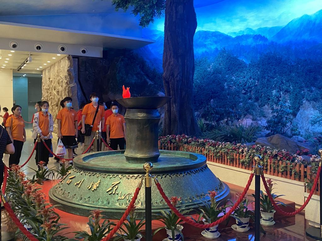 军歌浑厚抵红心,铁军精神冉新火。实践团第一站来到南昌新四军军部旧址陈列馆、南昌八一起义纪念馆。在陈列馆入口大厅,实践团成员自觉面向党旗重温入党誓词,忠诚的誓言发自肺腑,仿佛与军号的嘹亮产生了共鸣。