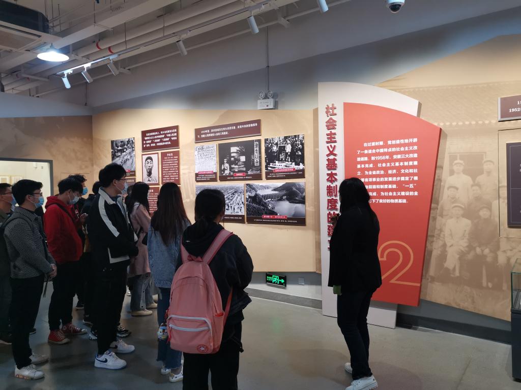 学员们依次参观了“缔造新世界”“建设新家园”“奋进新时期”“阔步新时代”四个展厅。同学们在讲解中了解到,在中国共产党的领导下,安徽人民策应北伐战争,掀起大革命高潮,投身全民族抗日战争和人民解放战争,迎来安徽全境解放的伟大贡献。新中国成立之后,安徽人民在党的坚强领导下,贯彻过渡时期总路线,完成社会主义改造,在江淮大地上建立了崭新的社会制度的相关历史。党的十一届三中全会之后,安徽人民发扬“敢为天下先”的精神,率先掀起农村改革,扩大对外开放,书写了中国特色社会主义安徽新篇章伟大成就。参观中,同学们驻足观看了安徽人民打赢脱贫攻坚战,各项事业取得历史性成就,发生历史性变革的伟大成就的展品,互相探讨,交流心得。一件件展品、一张张图片全面展示了一百年来,安徽人民在党的团结带领下进行顽强奋斗取得的伟大成就,彰显了中国共产党为人民谋幸福、为民族谋复兴的初心和使命。