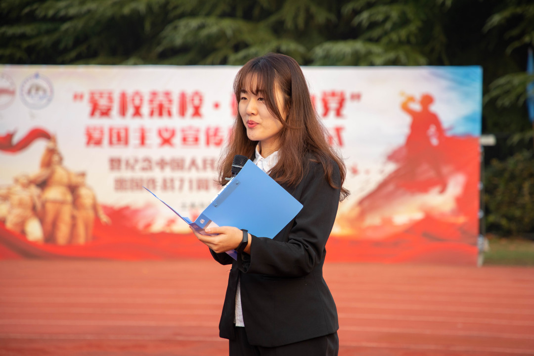 最后,从队伍中走出4名同学,齐声朗诵《谁是最可爱的人》,队伍旁30余名新生排列出“71”字样的队形,呼应本次纪念中国人民志愿军抗美援朝出国作战71周年主题,整齐划一的队形,慷慨激昂的声音,饱含深情的朗诵,使全场气氛达到高潮。
