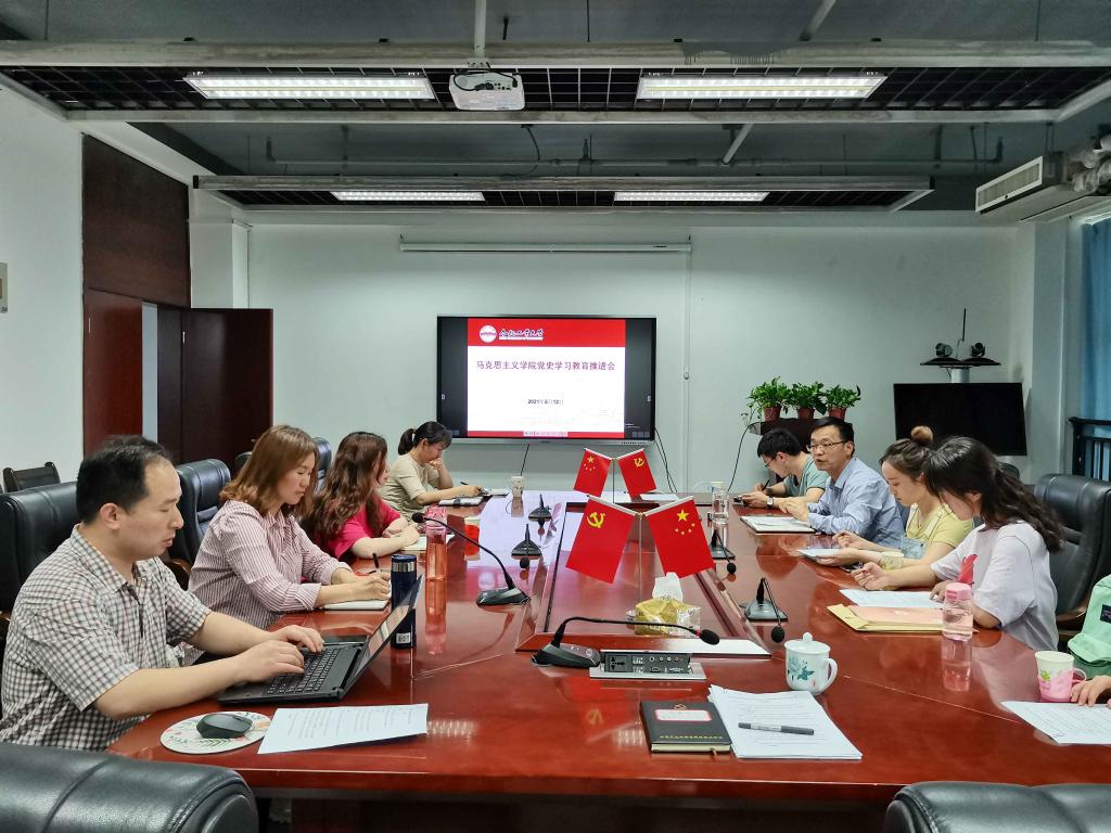 5月12日下午,马克思主义学院在翡翠湖校区建筑艺术馆612会议室召开学院党史学习教育工作推进会,会议由学院党委书记尉德芳主持,院党委副书记焦陈丰、党委秘书张慧玲和各党支部书记参加了会议。