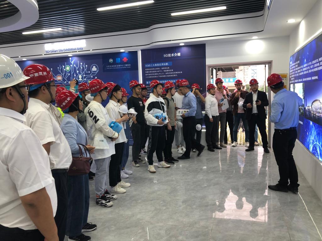 随后,与会人员参观了滨湖国际会展中心项目部的5G智慧工地展览馆、滨湖会展中心二期施工现场。学生们纷纷表示,通过此次活动进一步了解了在互联网背景下的建筑行业,对施工单位的工作环境、岗位也有了更新的认识,并对即将开展的实践教育充满期待。