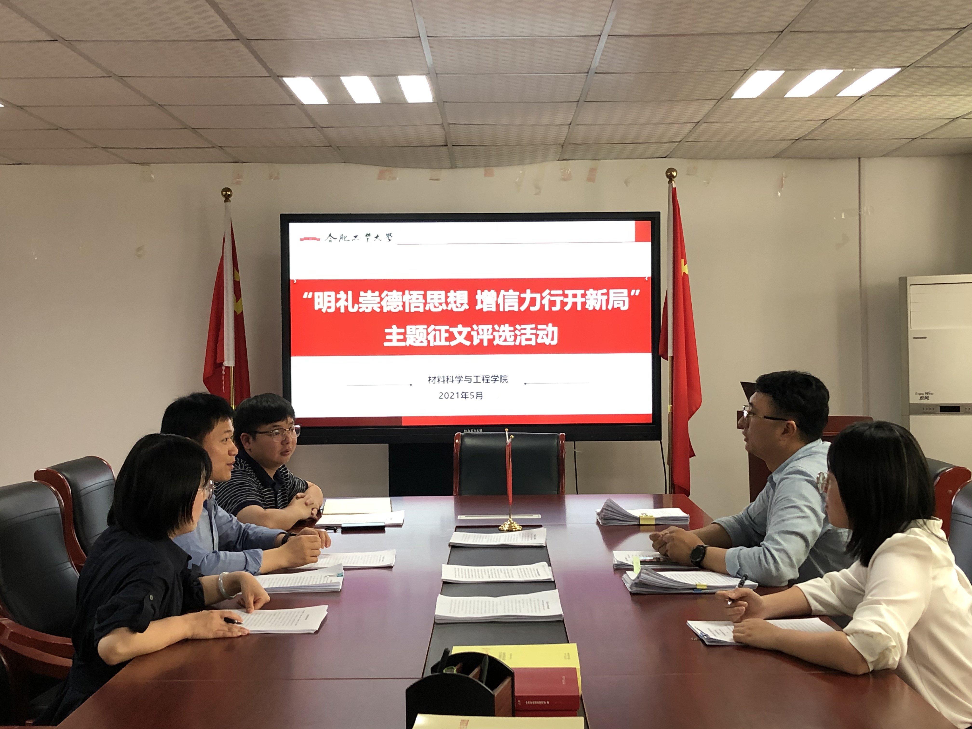 5月25日,材料科学与工程学院在材料楼党员之家举办“明理崇德悟思想 增信力行开新局”主题征文展评活动。学院党委相关负责人、党校班主任、各年级辅导员参加征文展评活动。