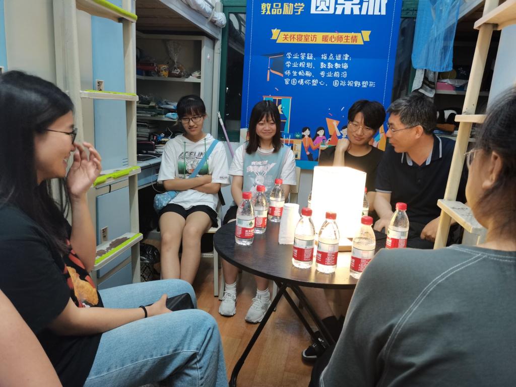 在寝室探访和座谈中,老师们与对应专业的学生深入交流,详细询问大家入学近一年来的收获和体会,了解学生们的学习适应情况、学业发展和职业规划等,提醒同学们珍惜大学时间,做好个人规划,加强体育锻炼,遇到困难、困惑及时和老师沟通,共同营造良好的学风、班风。同学们踊跃发言,和老师们分享自己的成长和收获,困惑和烦恼,活动持续了两个半小时。