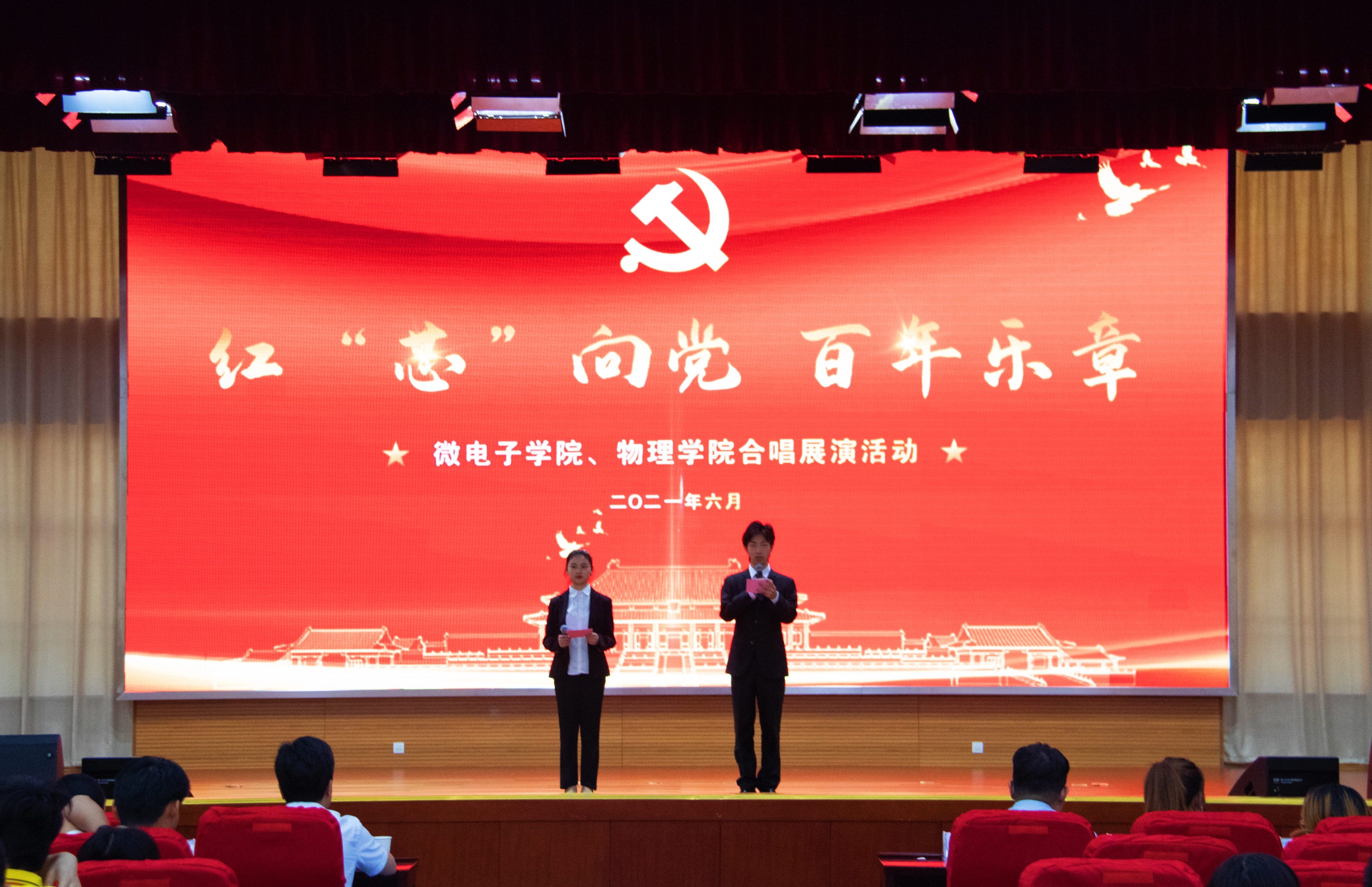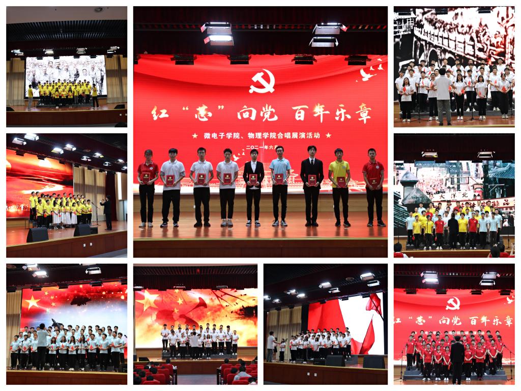 6月6日,微电子学院、物理学院在翡翠科教楼大报告厅开展“红芯向党,百年乐章”合唱展演活动。学院党校学员班成员和2020级全体同学参加活动。