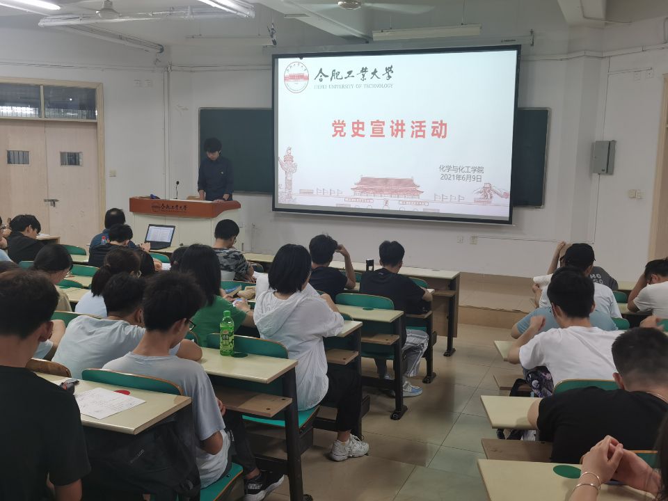 6月9日晚,化学与化工学院于翡翠湖校区十教201、十教205开展了党史宣讲活动,党史宣讲团第一宣讲组应邀宣讲,化学与化工学院2020级学生参加了本次党史宣讲活动。