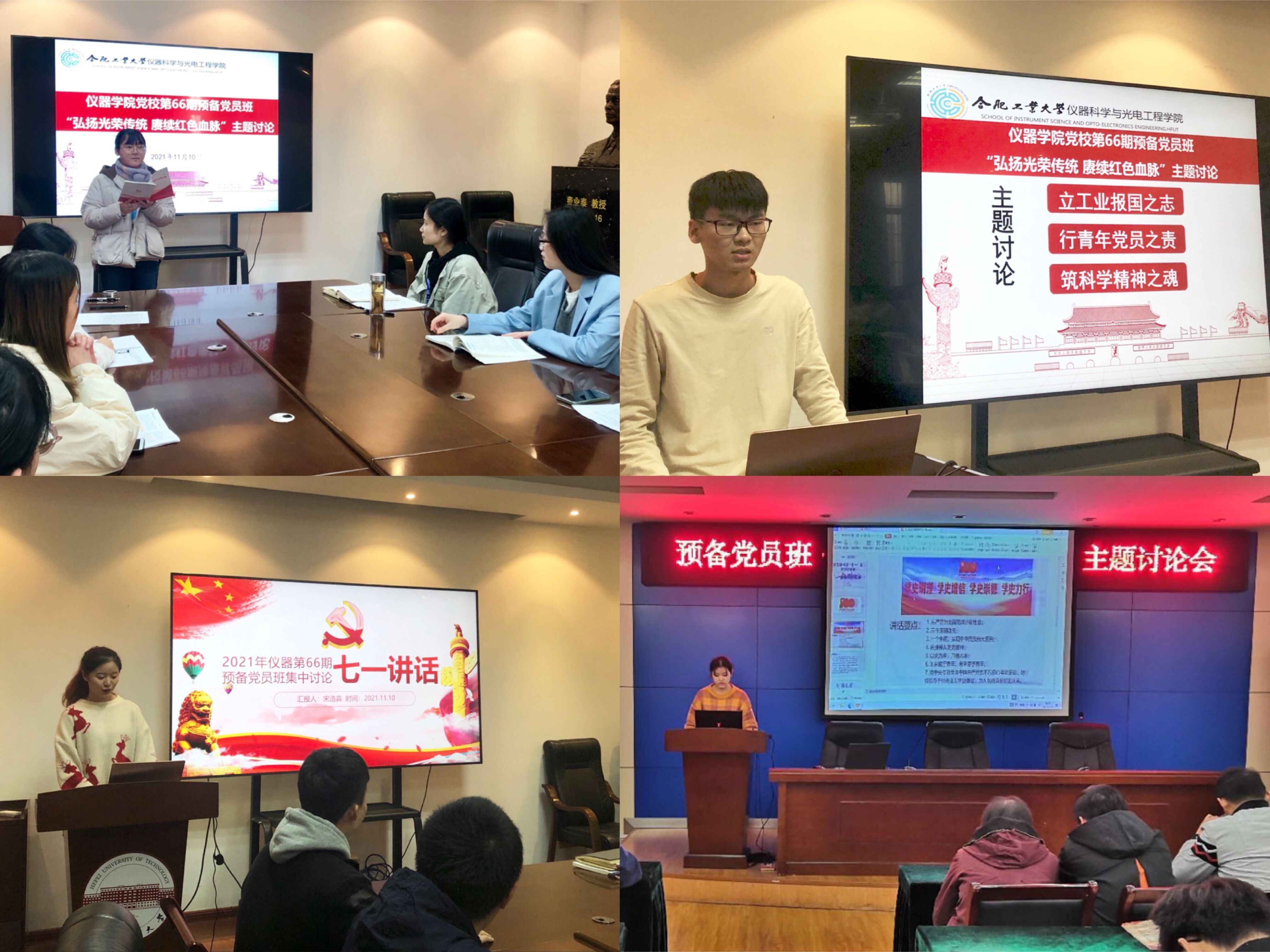 为深入学习贯彻“七一”重要讲话精神,11月10日,仪器科学与光电工程学院党校第66期预备党员班在科技楼236报告厅、225会议室开展了“弘扬光荣传统,赓续红色血脉”系列主题讨论。本次讨论分为“立工业报国之志”“行青年党员之责”、“筑科学精神之魂”三个模块。