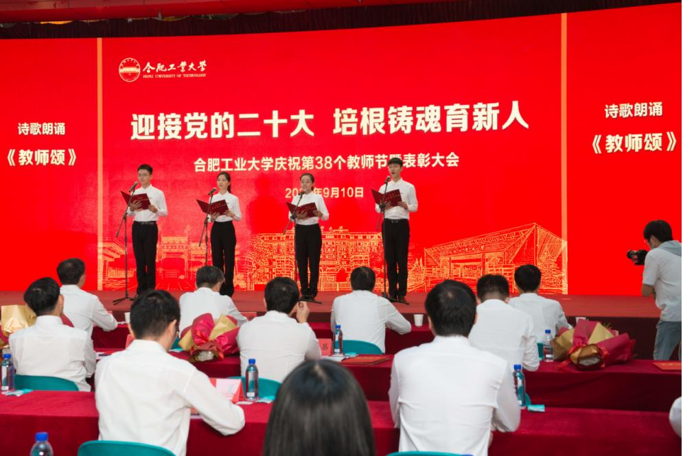 校大学生艺术团为全体教师献上了诗歌朗诵,一首《教师颂》为老师送上诚挚的节日祝福,表达了他们对老师的感恩之情。