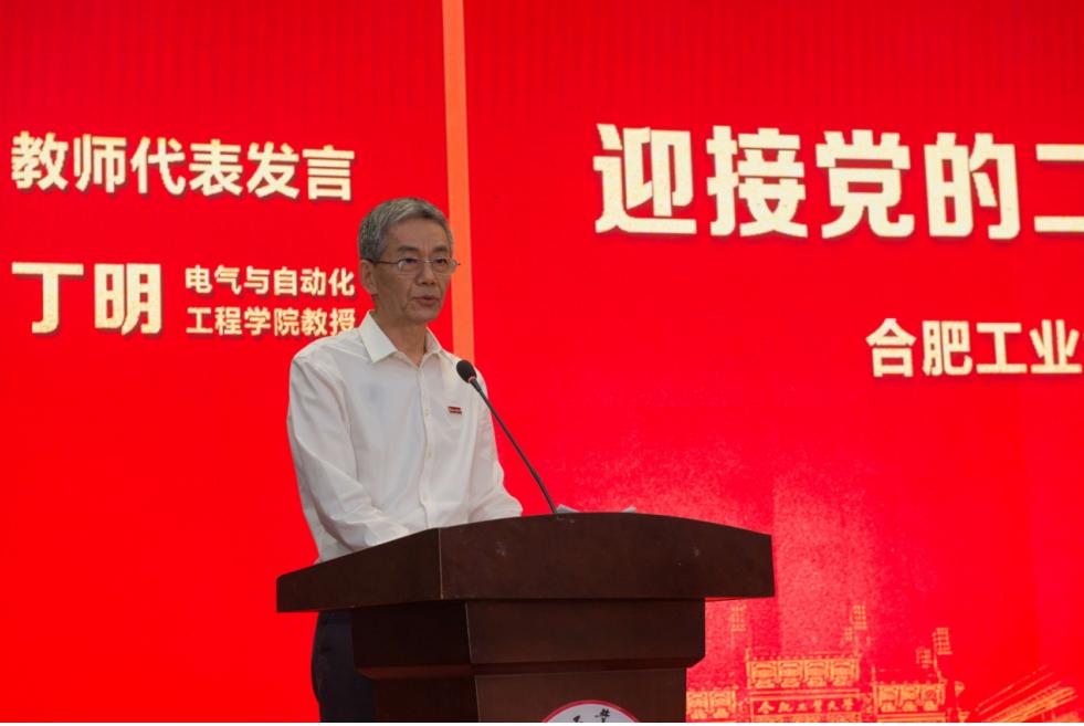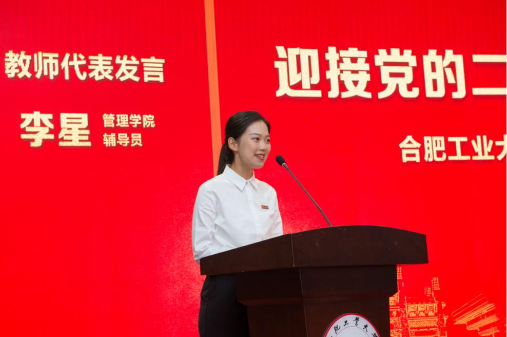 第二批全国高校黄大年式教师团队负责人丁明教授、管理学院新进学生辅导员李星作为教师代表在会上发言。他们分别从科学研究、团队建设、教育教学、关爱学生等方面讲述了自己的经历和体会。