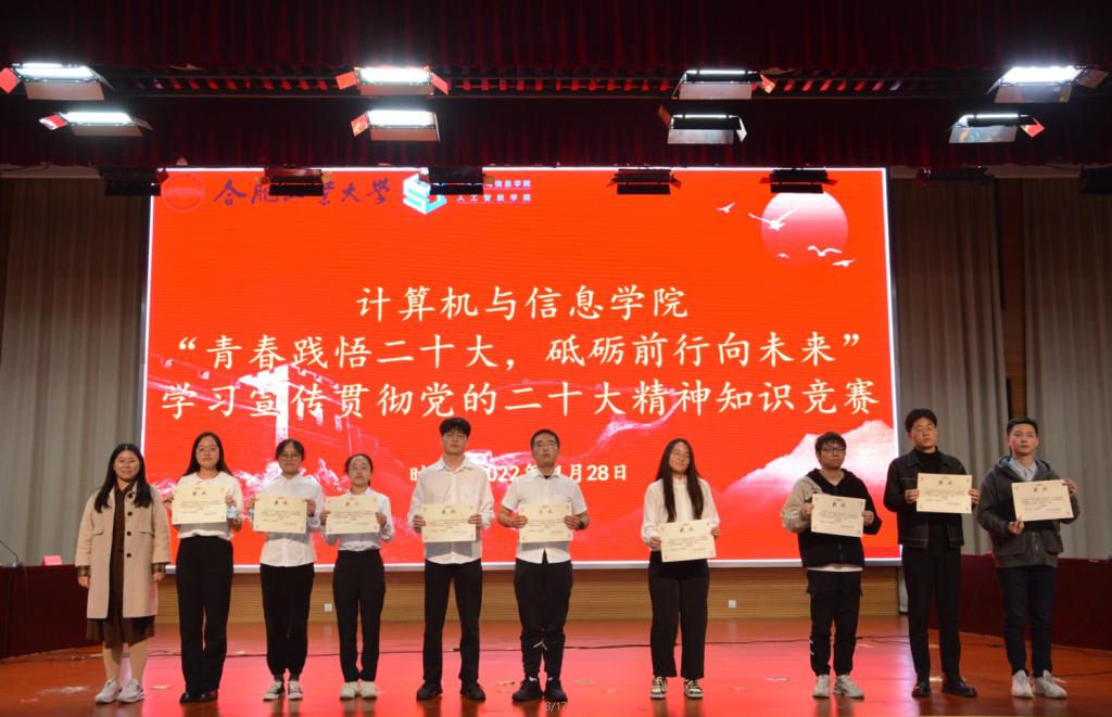 11月28日,计算机与信息学院在翡翠湖校区翡翠科教楼A座二楼报告厅举办“青春践悟二十大,砥砺前行向未来”学习宣传贯彻党的二十大精神知识竞赛。竞赛采用积分淘汰制,设计了抢答题、限时题、风险题以及观众互动四个环节。