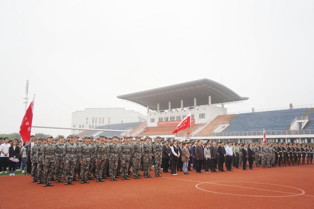 迎着清晨的微风,国旗护卫队踏着整齐有力的步伐护卫国旗入场,伴着激昂雄壮的《义勇军进行曲》,国旗冉冉升起,在空中迎风飘扬,全体师生行注目礼,齐唱国歌。国旗护卫队党支部党员代表丁欢欢、吴昱景讲述微党课《五四精神与新时代青年的使命》,党员代表张晋搏带领全体同学进行《以青春的名义宣誓》。“点亮青春理想,激昂奋斗旋律,澎湃创新动力,淬炼斗争精神”的铮铮誓言在体育场回响。与会师生许下对青春、对未来的庄严承诺。