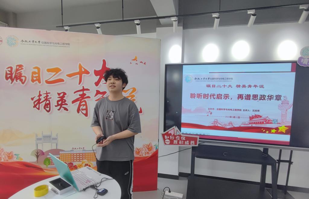 为推进学习贯彻习近平新时代中国特色社会主义思想主题教育走深走实,5月31日下午,仪器科学与光电工程学院“瞩目二十大·精英青年说”第四期《时代中国:主题教育正当时》在翡翠湖校区学生社区举办。学院相关老师、精英青年宣讲团成员、班级思政委员、入党积极分子参与活动。