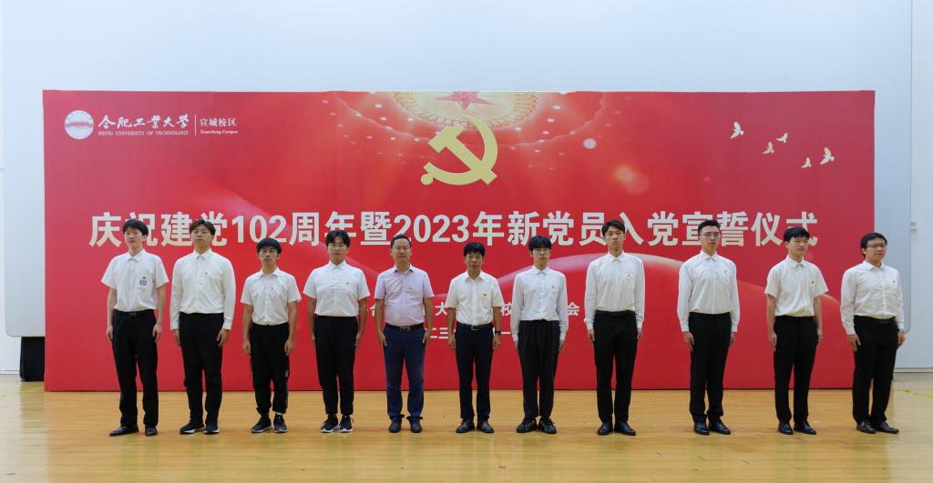 7月1日上午,宣城校区举行庆祝建党102周年暨2023年新党员入党宣誓仪式。校区党委副书记、管委会常务副主任方留,相关部门负责人,学生党支部书记,师生党员代表等参加会议。
