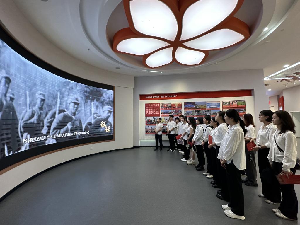随后,全体党员跟随讲解员,依次参观了新民主主义革命时期、社会主义革命和建设时期、改革开放时期和中国特色社会主义新时代四个篇章。从崔筱斋到马毛姐,从北乡支部创建到合肥解放,从环河时代到滨湖时代再到环湖时代,每一幅图片、每一件文物、每一段视频都真实记录了合肥人民在中国共产党的领导下创造的不朽功勋和光辉业绩,再现了合肥人民踔厉奋发、砥砺前行的拼搏精神。